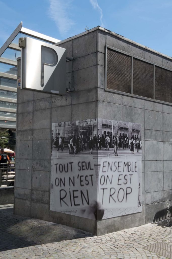 Pol Pierart, Tout seul, on n’est rien. Ensemble, on est trop. Photo : Guy Focant (Liège, Place Cathédrale, BE)