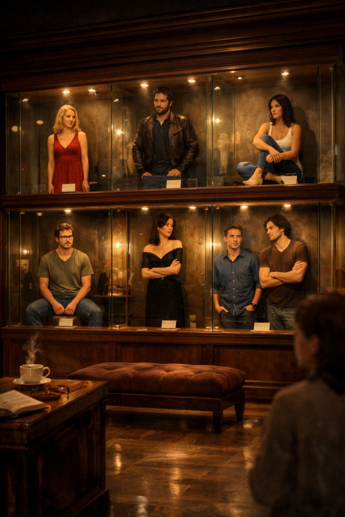 Il y a des gens qui collectionnent leurs ex comme d’autres collectionnent des faïences. Un sur chaque étagère, à bonne distance les uns des autres, bien éclairés, chacun portant une petite étiquette invisible – originedate d’acquisitionétat de conservation. La collection ne se vend pas. Elle ne s’expose pas non plus, vraiment. Elle se garde. On y revient parfois, distraitement, le dimanche.