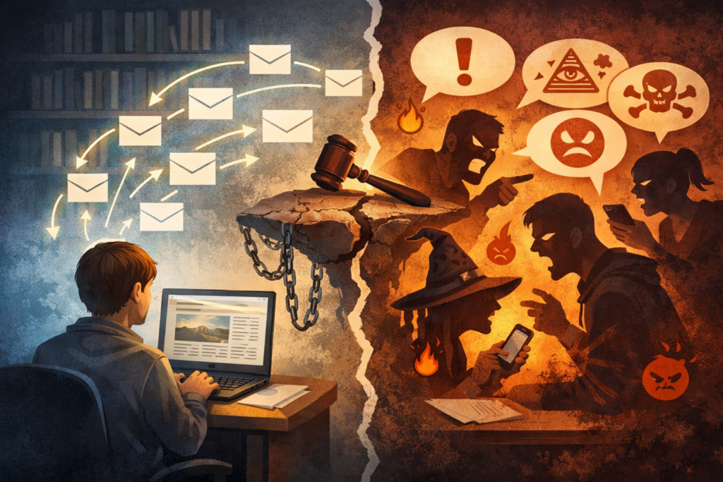 L’argument inverse – celui qui prétend que partager un article revient à cautionner l’ensemble des réactions qu’il engendre – repose sur une logique de contamination par proximité. C’est le même raisonnement qui condamne quelqu’un pour les fréquentations de ses fréquentations, qui tient un auteur pour responsable de l’usage que des lecteurs font de son œuvre, qui accuse une bibliothèque de promouvoir les thèses les plus sulfureuses qui s’y trouvent sur une étagère. Le mécanisme est connu : il s’appelle la culpabilité par association, et il n’a jamais été un outil d’analyse – c’est un outil de contrôle.